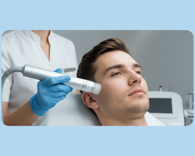 This treatment differs from a basic facial because it uses technology rather than manual extractions, making it more effective and less irritating. Many men prefer it because it’s quick, comfortable, and delivers immediate visible improvements.